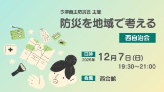 今津自主防災会主催の住民防災学習「防災を地域で考える」西自治会にて、防災DVD鑑賞後、防災についてのお話をさせて頂きます。