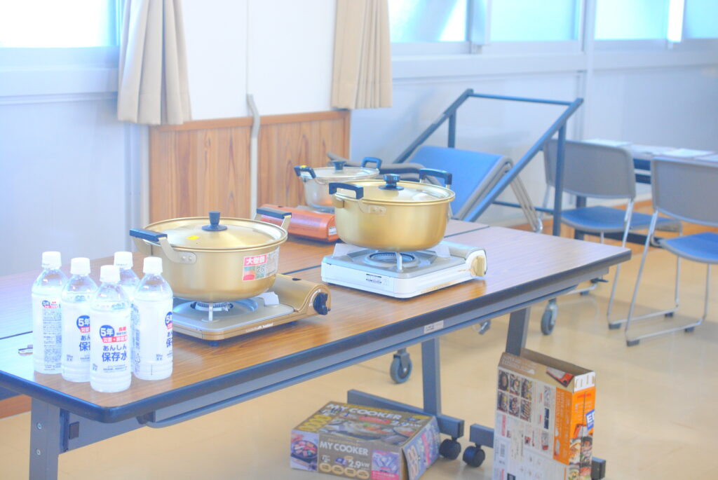 湯煎調理でご飯を炊きながら、ライフラインが停止した生活について想像しやすいように、色々な資料や実演を行いながら、お話をさせて頂きました。