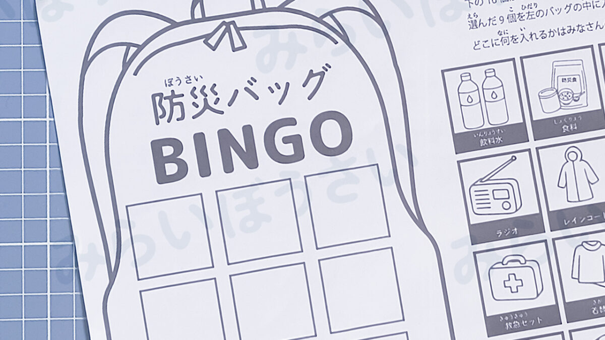 イベントに向けて、オリジナル防災ゲーム「防災バッグBINGO」を考案しました。テストプレイを経て、無料配布出来るよう準備を進めています。